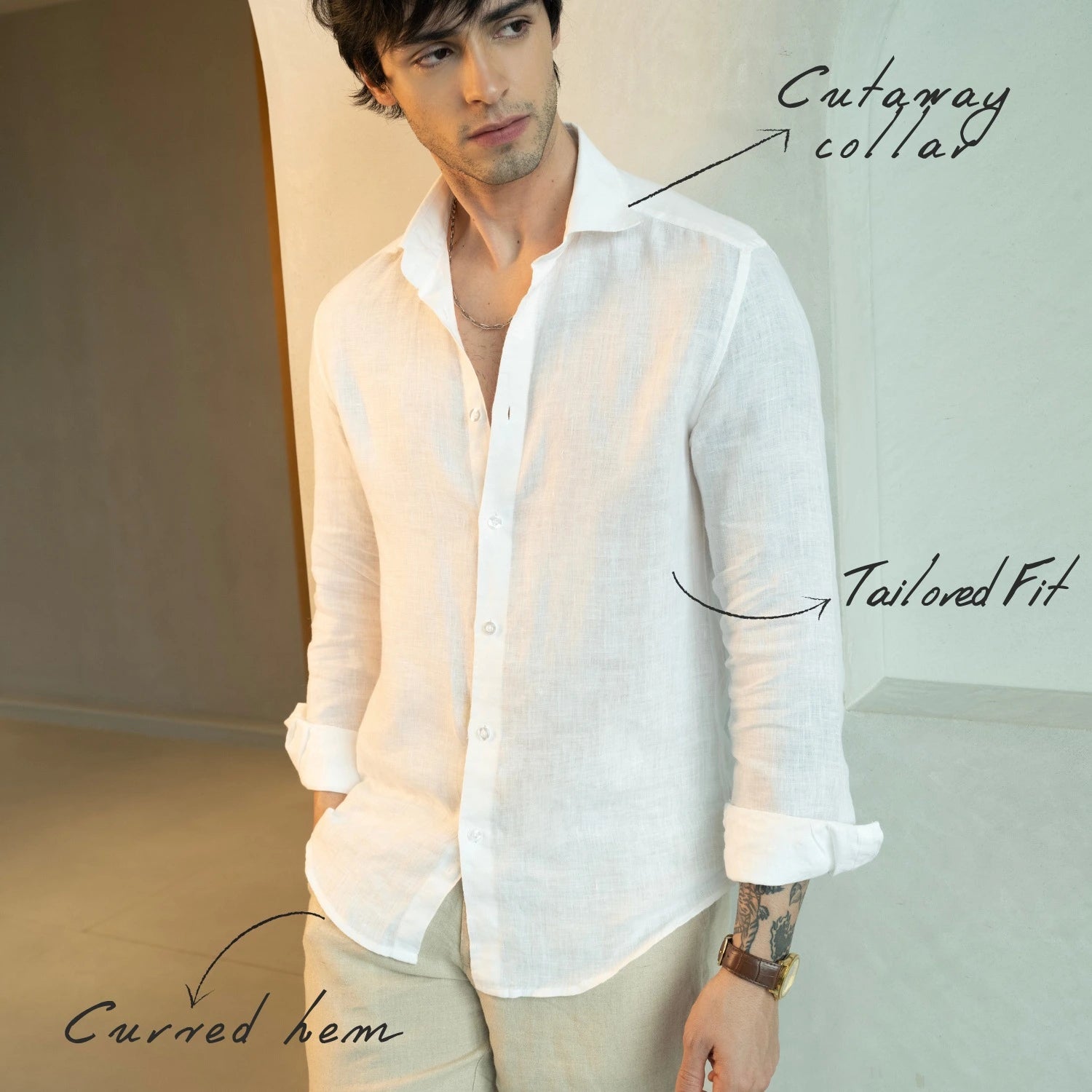 Crafting the perfect linen shirt needs meticulous attention to detail, and we've ensured every element is just right. We source our linen from Ireland, renowned for its world-class fabric and exceptional softness. The fit strikes an ideal balance—breathable and comfortable, neither too snug nor too loose.